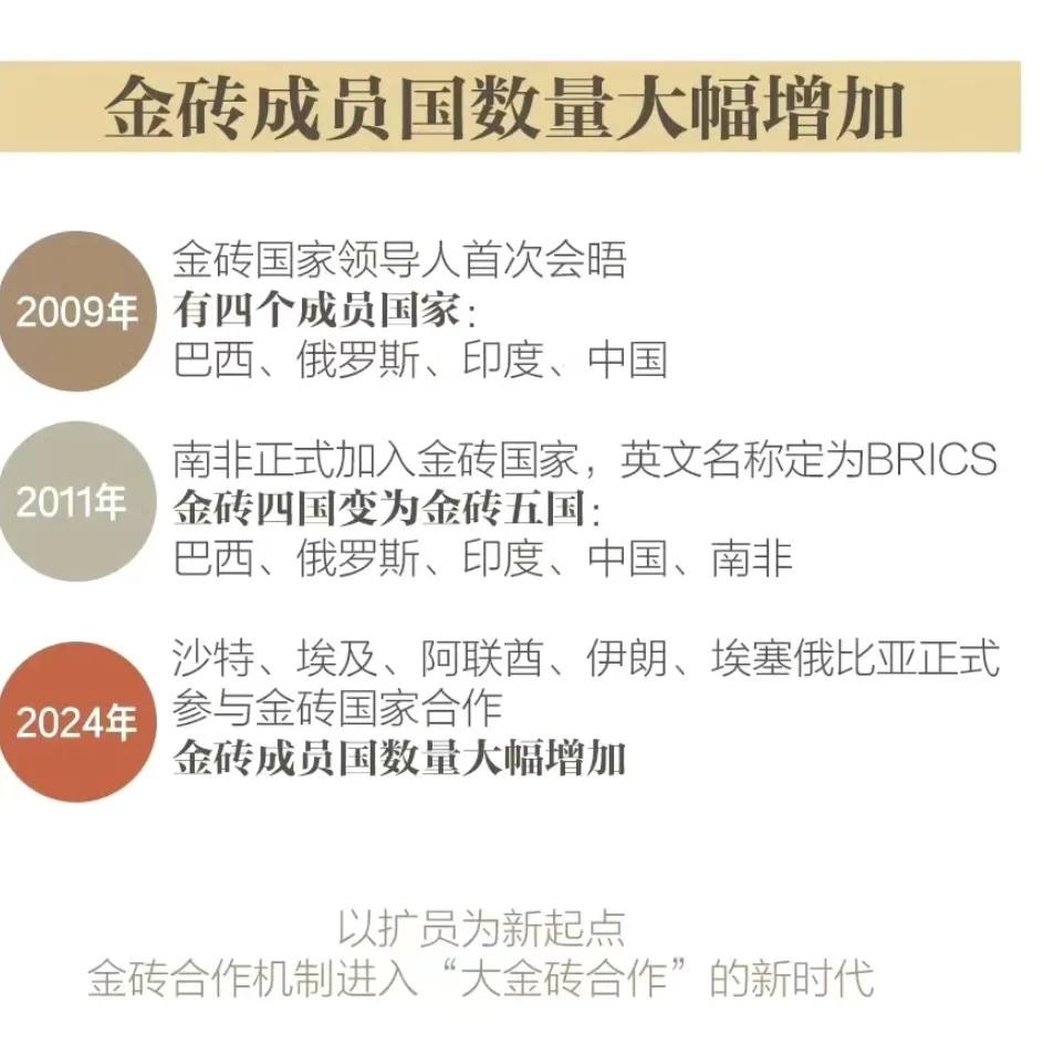 而到了今年,2024年金砖国家再次迎来扩容,沙特阿 拉伯、埃及、阿联酋、伊朗和埃塞俄比亚这五个国家正式成为金砖大家庭的成员,使得金砖国家总数达到了十个。