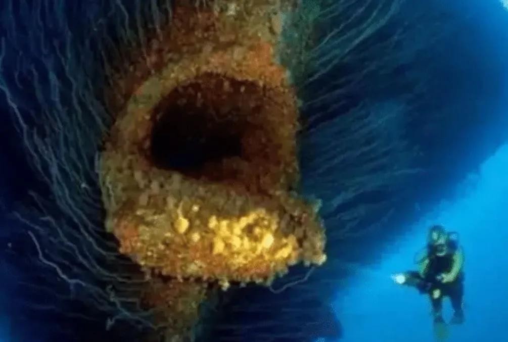 这个海底“巨兽”看上去十分恶心,全身都长满了黄色的不明物质,凹凸不平,长着大嘴,仿佛能把你吸进去,还有很多“胡须”,十分的渗人!但你敢相信它是一艘沉船吗?