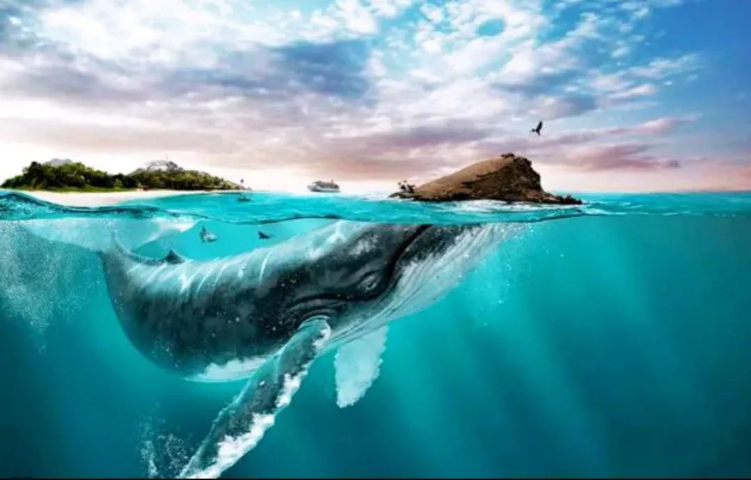 海上的看似岩石的凸起可能是一只海洋巨兽的头