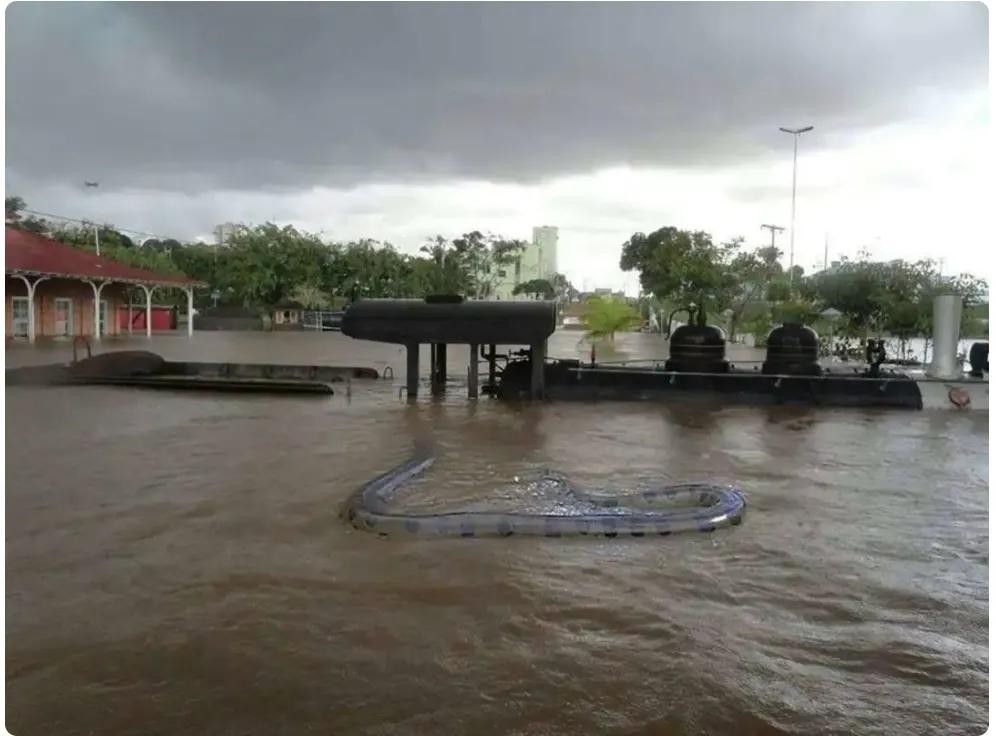 因为洪水被吵醒的巨蟒,遇到一定要小心