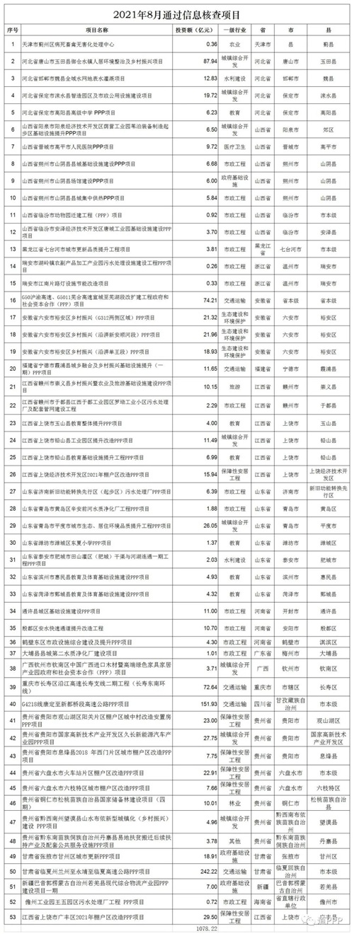 财政部PPP项目库更新:8月新入库53个,涉河南3个→