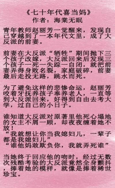 第一本《七十年代喜当妈》作者 :海棠无眠