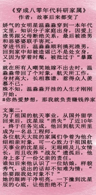 第五本《穿成八零年代科研家属》作者:故事后来都变了