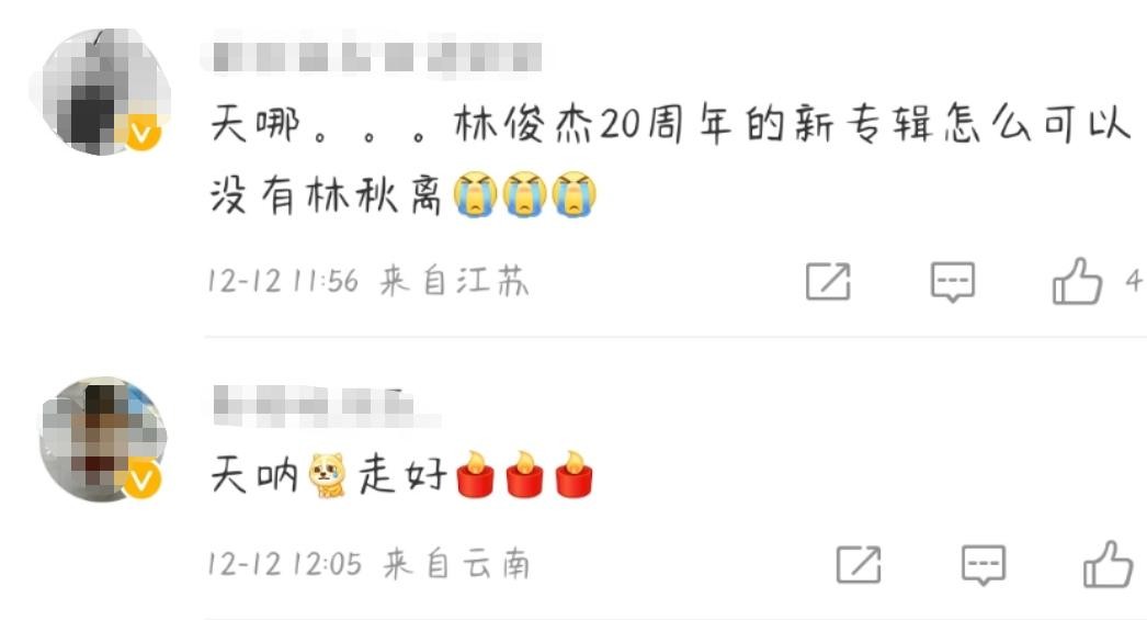 听闻此消息,网友纷纷表示很震惊,林秋离的年纪并不大,怎么走得这么突然。也有网友表示很遗憾,林俊杰20周年的新专辑怎么可以没有林秋离,想必大家一定很喜欢他。