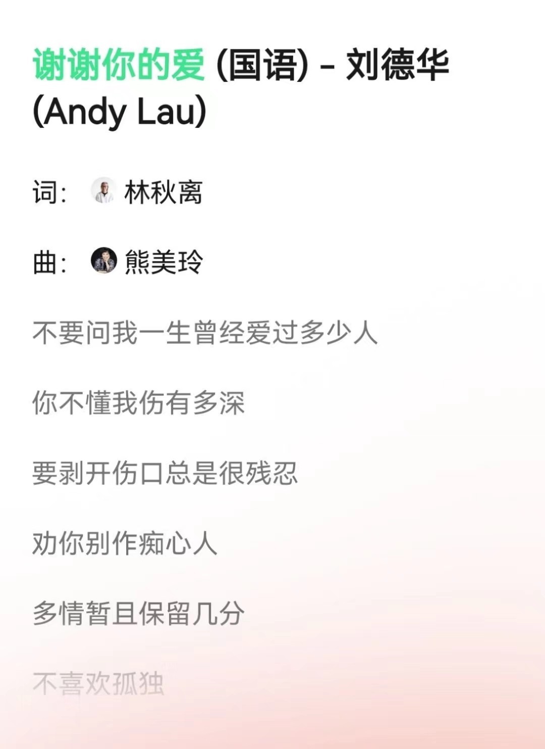 林秋离还为香港艺人刘德华作词《谢谢你的爱》,他作的词经典而深入人心,受到了很多人的喜爱,这首歌正是他和太太熊美玲一起合作的。