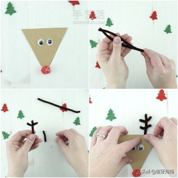 这个比较复杂,把扭扭棒剪下来,作为驯鹿的耳朵