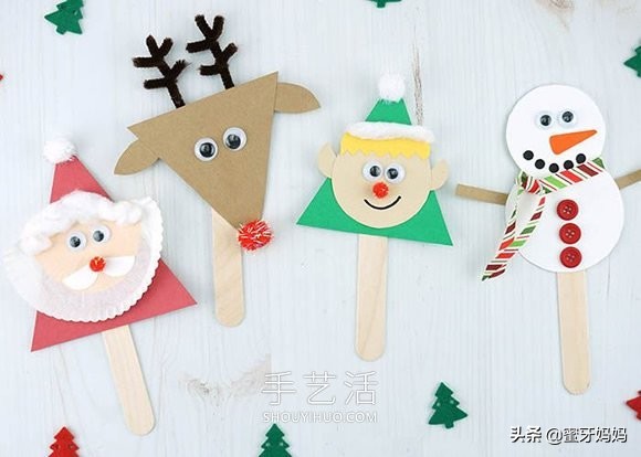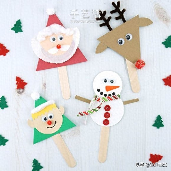 圣诞节的时候,除了做圣诞树,雪人等,我们也可以尝试做一些有趣的木偶,并用它们表演关于圣诞节的小故事。分享一个有趣的手工教程,用卡纸和雪糕棍做圣诞老人、圣诞精灵、雪人和驯鹿的木偶,如果你喜欢它们,跟着下面的图解步骤试试看吧!~