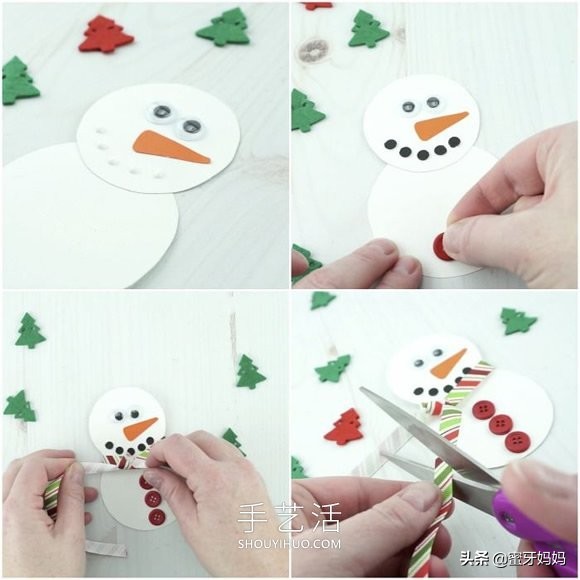 雪人的话,把扣子贴在雪人的肚子上作为装饰
