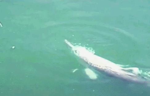 白暨豚是地球上最大的也是最原始的淡水鲸类,它完全生活在淡水中,在长江中下游常见。