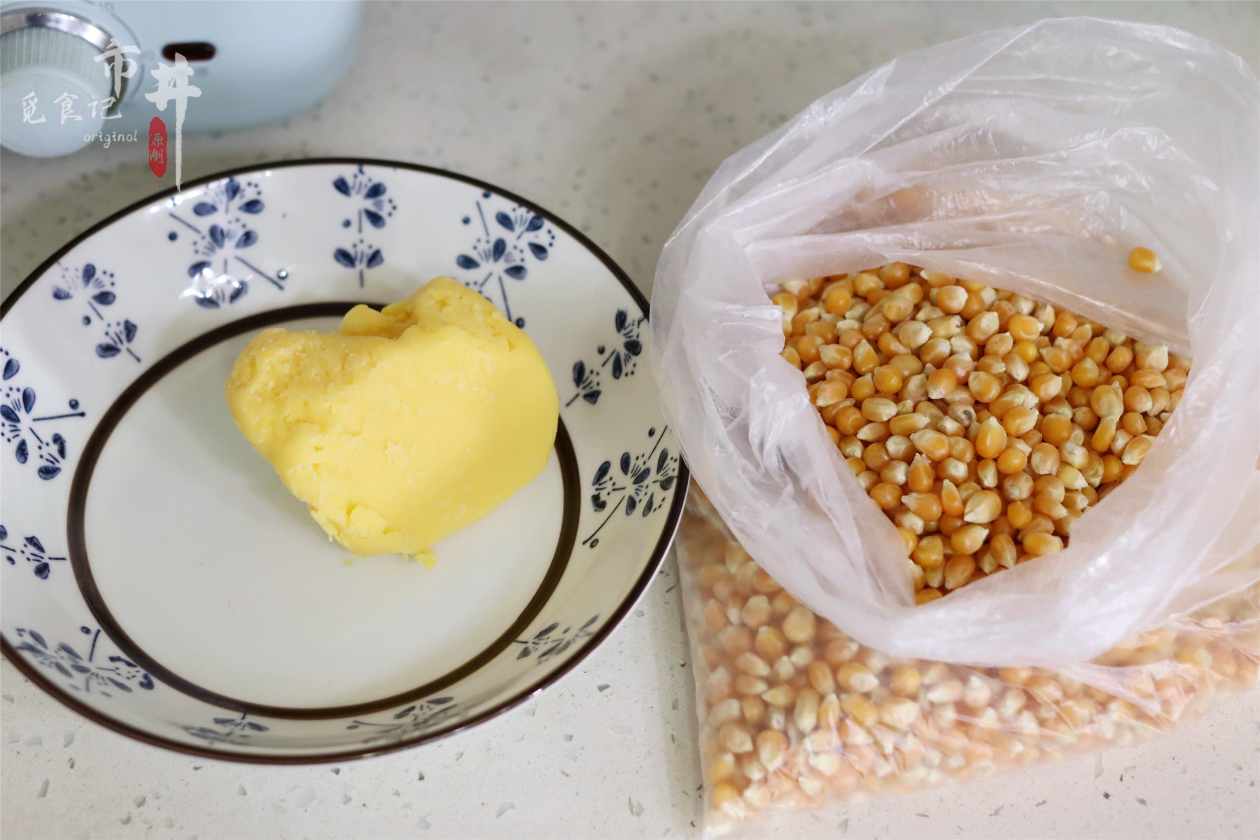 原料:爆裂玉米、黄油、白糖