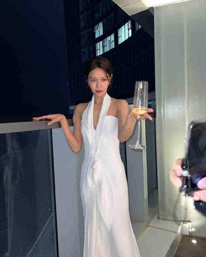在公开的照片中,少女时代秀英身穿彰显苗条身姿的白色紧身露肩晚礼服裙装,手中拿着酒杯站在酒店的阳台上,一袭耀眼的白裙,营造出优雅又纯真的氛围,展现了崔秀英迷人的美貌,端着酒杯的秀英,秀出迷人的身体线条,拥有纤细苗条身材的秀英,骨感流畅的直角肩线和健康的肤色,也吸引了韩国网友们的注意力。