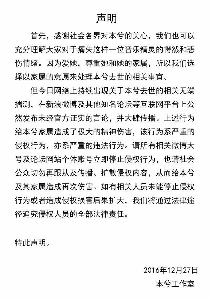 而下午,工作室发布声明