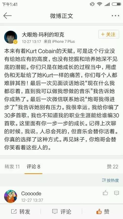 不过,由于原因不明,对于死因的揣摩也越来越多,而下面这条微博似乎透露了本兮离世的些许原因