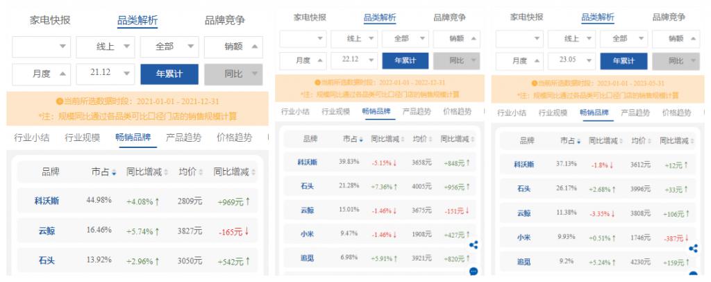 而在洗地机市场,添可占据半壁江山,以追觅、美的、海尔、石头为代表的的品牌增长显著,云鲸的市场占有率仅 1.7%。