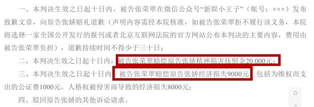 最后,法院判决造谣者赔偿张天爱2.9万元,并且公开做出道歉。张天爱选择通过法律途径维持自己的权益,法院通过证据,认为造谣者的一些文章是没有事实依据的侮辱,对张天爱造成了名誉上的伤害。
