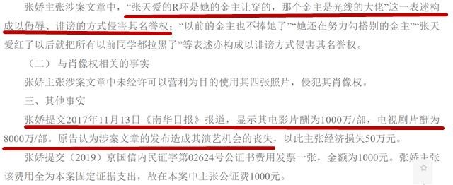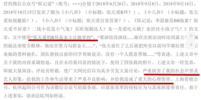 张天爱称,这些文章的发布对她的名誉造成了巨大的损失,丧失了很多演艺机会。