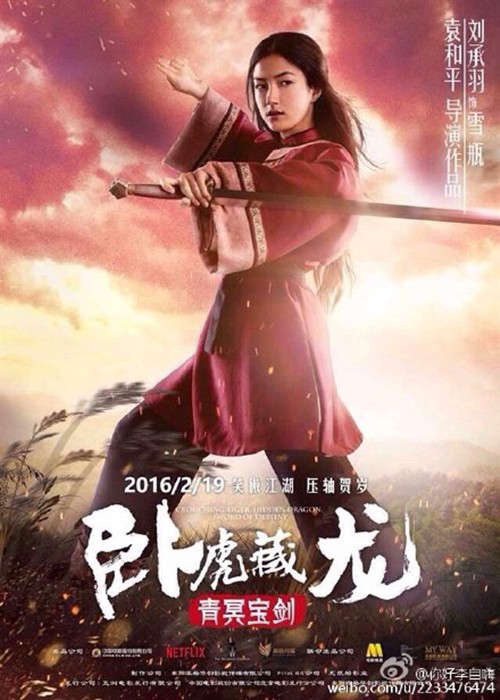 电影《卧虎藏龙:青冥宝剑》中扮演雪瓶一角的来自澳洲的刘承羽,被喻为“翻版章子怡”、“翻版林青霞”等,杨紫琼更与她结缘,早前收刘承羽为徒弟。现年21岁的刘承羽,是来自澳洲的中意混血儿。她坦言试镜后获演出机会感觉如中头奖,她本身为跆拳道黑带,更获杨紫琼欣赏收她做徒弟,早前进行了拜师仪式。