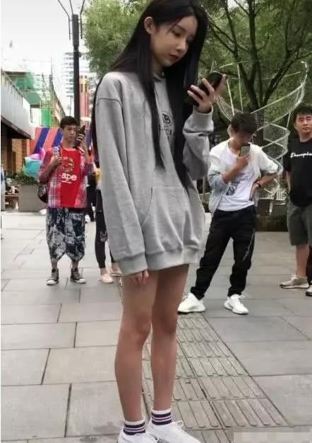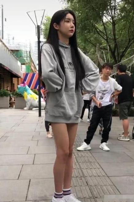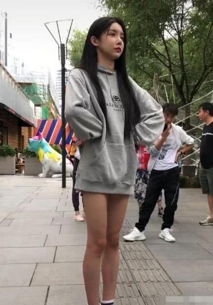 从照片中可以看到艾比身材非常的苗条了,一头长到腰间的秀发披散着,上身穿了一件非常宽松的长袖卫衣,下身短裤隐藏在上衣下摆里面,露出了一双虽然看起来不算粗,但是却有肌肉的双腿,只看上半身的话加上秀丽的容貌你肯定认为他是一个可爱的平胸妹子,而且比一般的妹子都腰漂亮的那种。