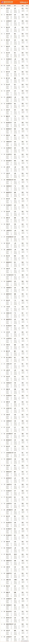 第6:清华,总分206.1,众所周知,清华以工科见长 ,清华工科和机械都荣膺冠军,文科方面能取得第6的成绩实属不易。