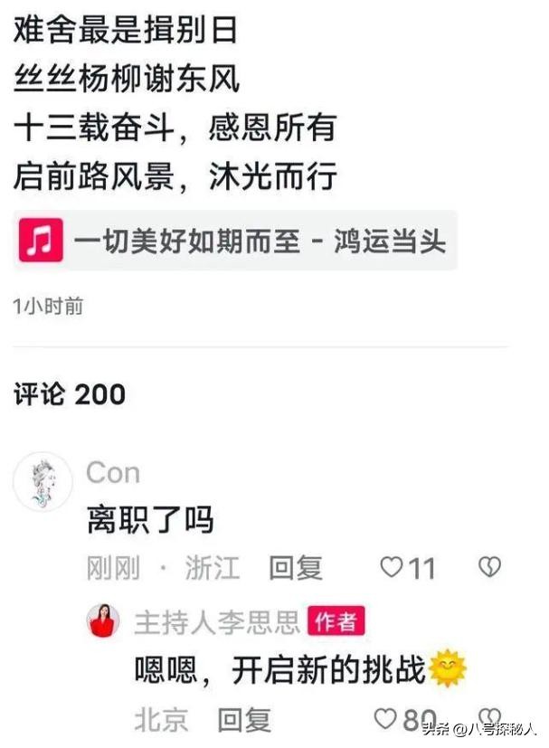 新浪网——李思思隐退央视原因曝光!回复疑似因为孩子,引起网友热议