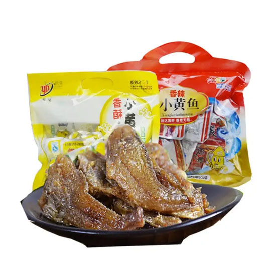 小黄鱼做成的小零食肉质鲜嫩,鲜香十足,极为酥脆可口,酥到连骨头都能吃,完全不卡喉咙,第一次吃就是被这酥脆的口感和香味所吸引。