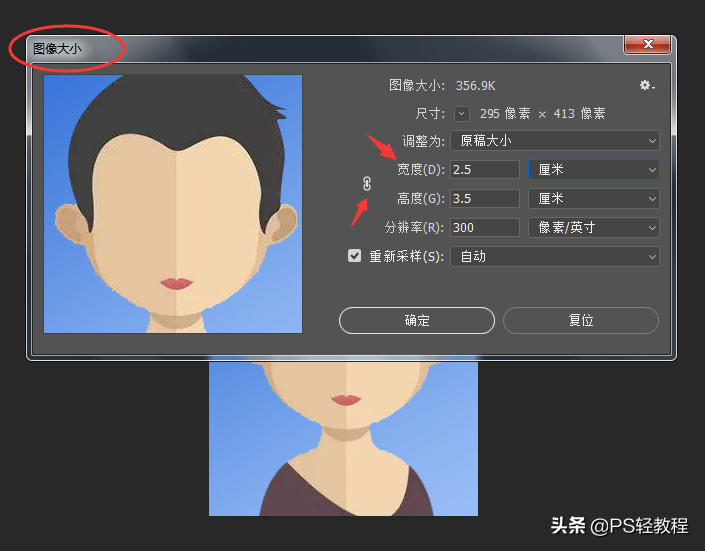 第一种就是比较简单的,在PS里面打开照片,然后快捷键:ctrl+alt+ i,调出“图像大小”面板,然后只改变图片的宽度就行,高度会自动适应(左侧的链接图标表示宽高按照一定的比例放大缩小,点击之后就会取消宽高比例,那样就可以自定义宽高了,不过照片会变形哦!),调整之后另存为jpg/png即可。