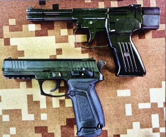 特战蛙人使用的潜水战斗手枪(上)与92A型9毫米口径战斗手枪。