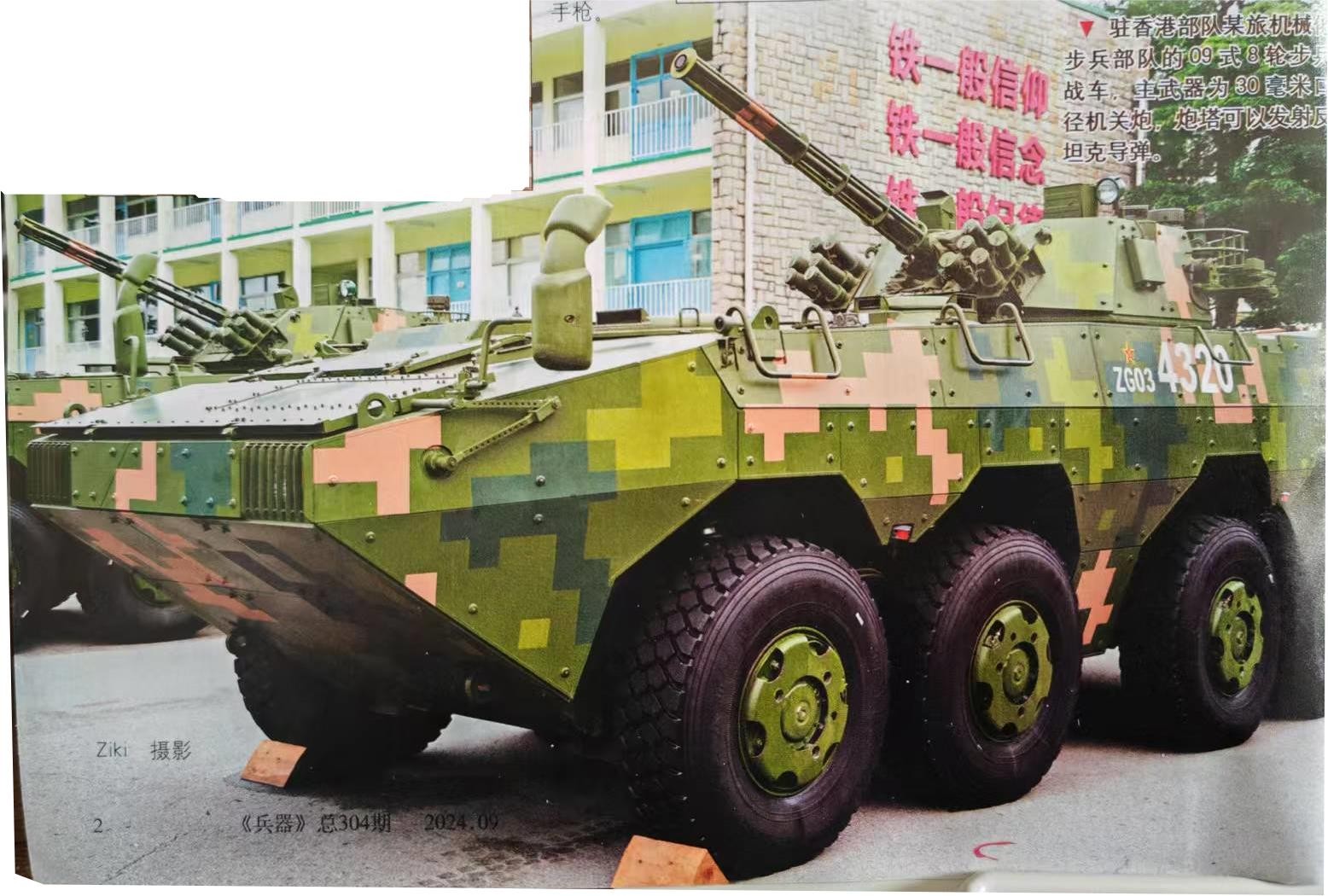 驻香港部队某旅机械化步兵部队的09式8轮步兵战车,主要武器为30毫米口径机关炮。炮塔可以发射反坦克导弹。