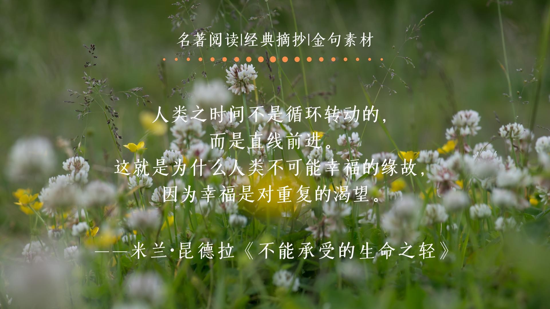 人类之时间不是循环转动的,而是直线前进。这就是为什么人类不可能幸福的缘故,因为幸福是对重复的渴望。