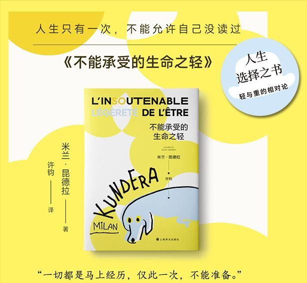 人生的悲剧总可以用沉重来比喻。人常说重担落在我们的肩上。我们背负着这个重担,承受得起或是承受不起。我们与之反抗,不是输就是赢。 她的悲剧不是因为重,而是在于轻。压倒她的不是重,而是不能承受的生命之轻。