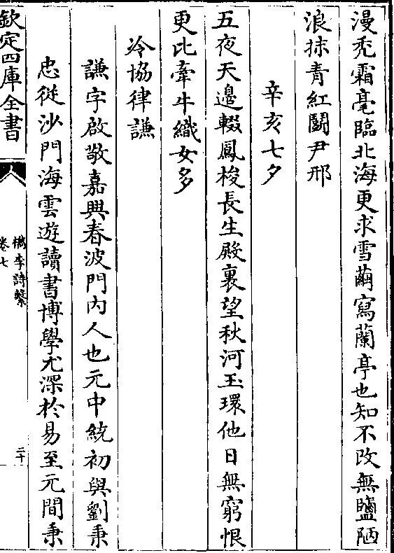 第一次,成化年间(1465—1487),冷谦钟爱嘉兴一位博学善诗的布衣,叫汤半邨,冷谦授其养生修仙之术。《槜李诗系》收录其诗,附考曰:汤布衣文,字公著,号半邨,晚年喜欢与方外术士交游,相传遇到冷仙,冷起敬授以修真炼丹之术。