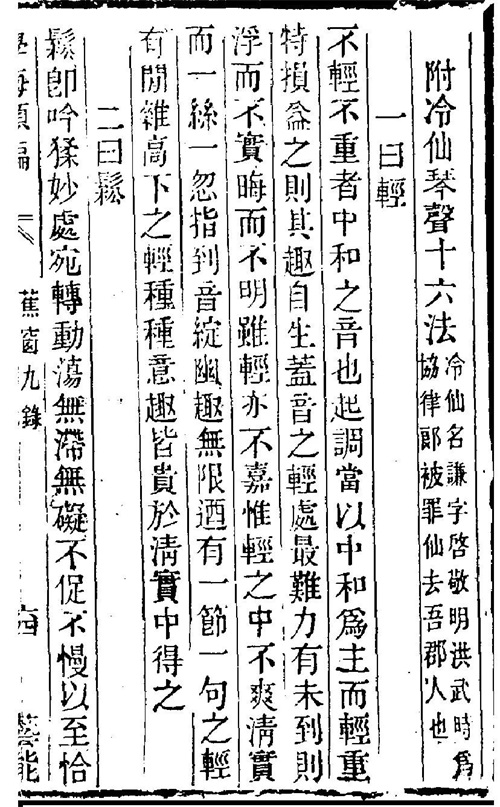 ▲《蕉窗九录》附录冷仙《琴声十六法》
