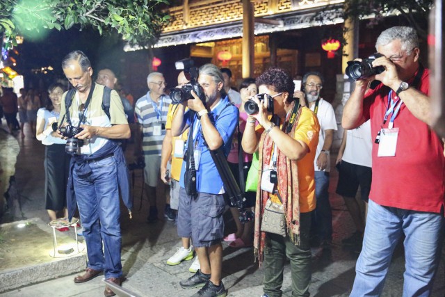 古城建筑与水街水巷相互融合,美景画面到处都是,随手一拍便是一张摄影大片,来自全国各地的摄影爱好者总会端起长枪短炮来此取景,古城已成为摄影家们必去之地。今年8月世界摄影大会台儿庄古城分会场,150余名摄影大师来到台儿庄古城,他们用镜头定格古城建筑的非凡魅力。古城内建有婚嫁基地,许多年轻人将古城作为拍摄婚纱照的外景地,美轮美奂的古城建筑为婚纱摄影提供了绝佳的背景。