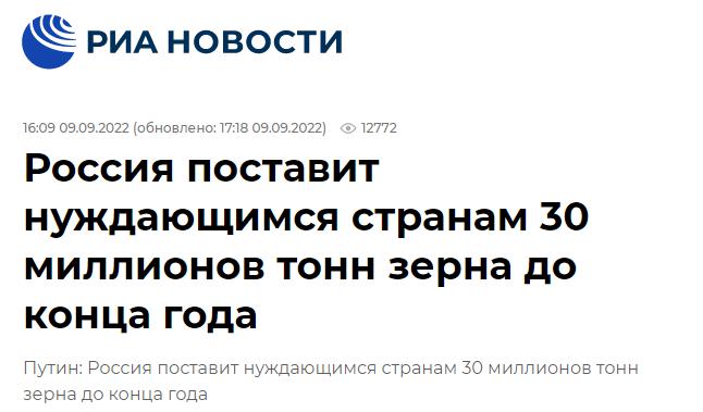 两天前,普京在第七届东方经济论坛全会上指出,从乌克兰出口的粮食几乎都不是运往发展中国家,而是运往欧盟,俄罗斯和最贫穷的国家再次 " 被西方国家耍了、骗了 "。