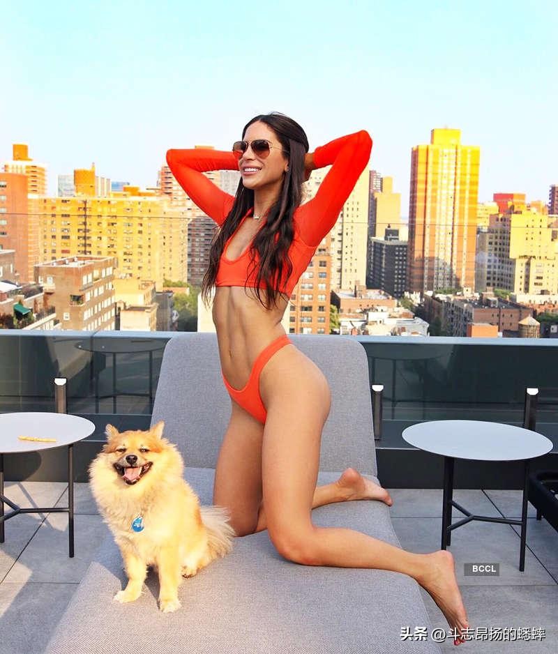 这位受欢迎的健身教练摆出姿势,让粉丝们看到她健美腹肌的清晰度,双手放在脑后摆姿势,长长的深色马尾辫在风中飘扬。然后她转身面对水面,同时将双臂举过头顶,对着镜头炫耀晒黑的发髻。