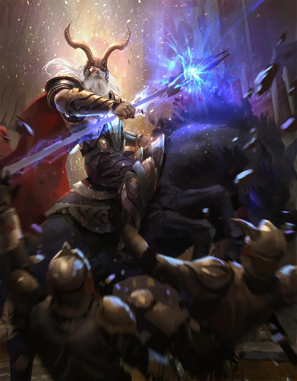 奥丁掌控九阶,曾击退暗夜精灵族阵风以太离子承载的现实宝石,甚至击退冰霜巨魔族,夺取寒冰魔方。奥迪在世仅凭一己之力镇压九界太平。
