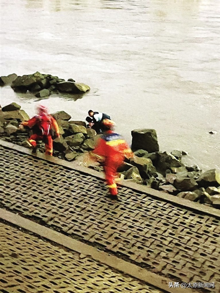 现场的地形非常复杂。江两侧是乱石滩,滩边有约3米高的防波堤,堤上有栏杆,栏杆外才是供行人通行的步道,也就是孙宇所在的位置。尽管如此,孙宇还是义无反顾地翻过了护栏。