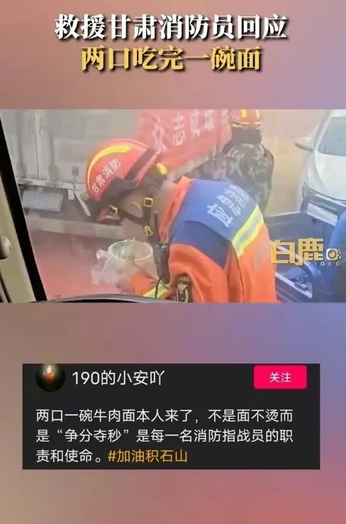 救援甘肃消防员两口吃完一碗面,家人看到后心疼得流泪……