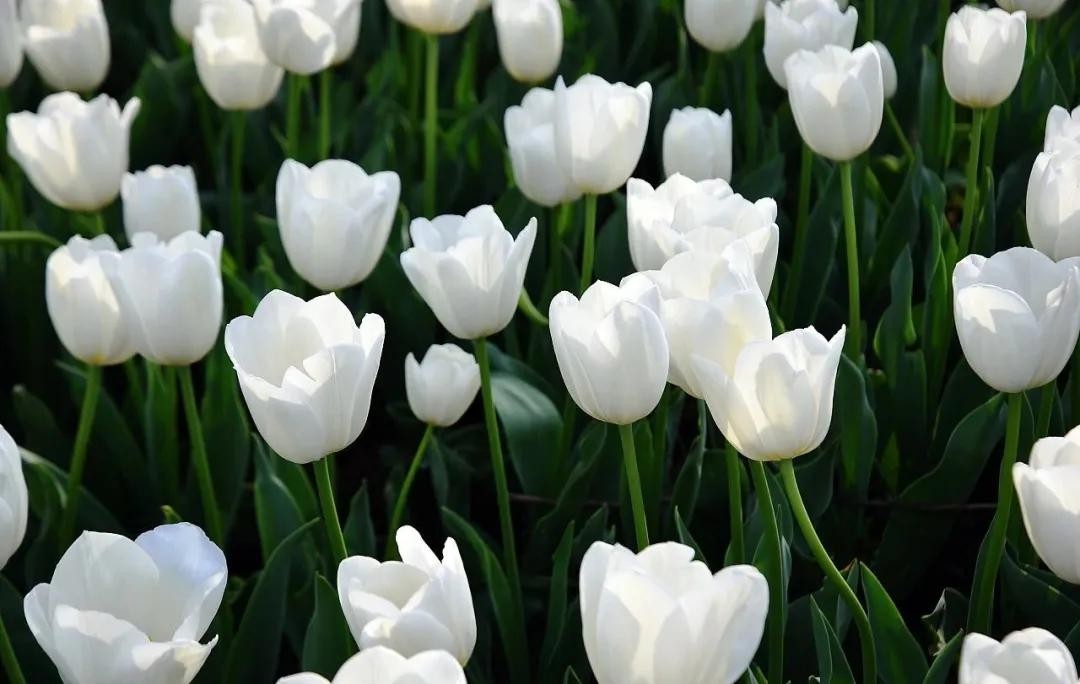 白色的郁金香,是郁金香花中的素衣少女,在众多鲜艳妖娆的郁金香花中,是最特别的一位,素净、清纯。其他颜色的郁金香都是争艳的,一个比一个色彩浓郁,唯有白色郁金香,一身洁白,清雅脱俗。