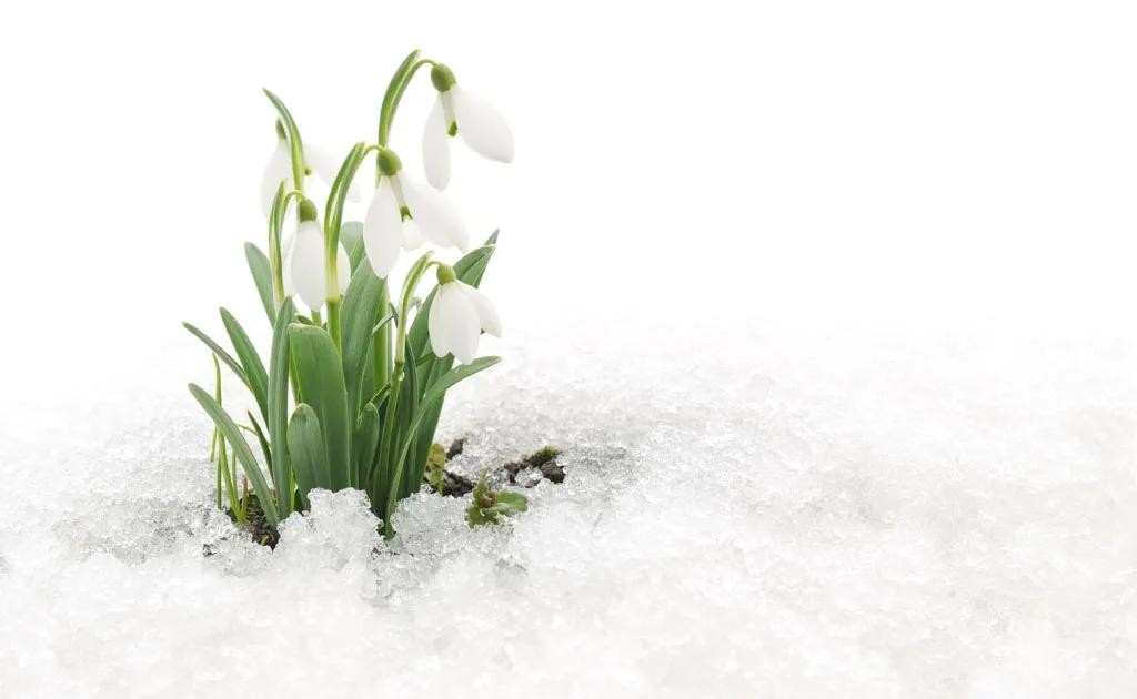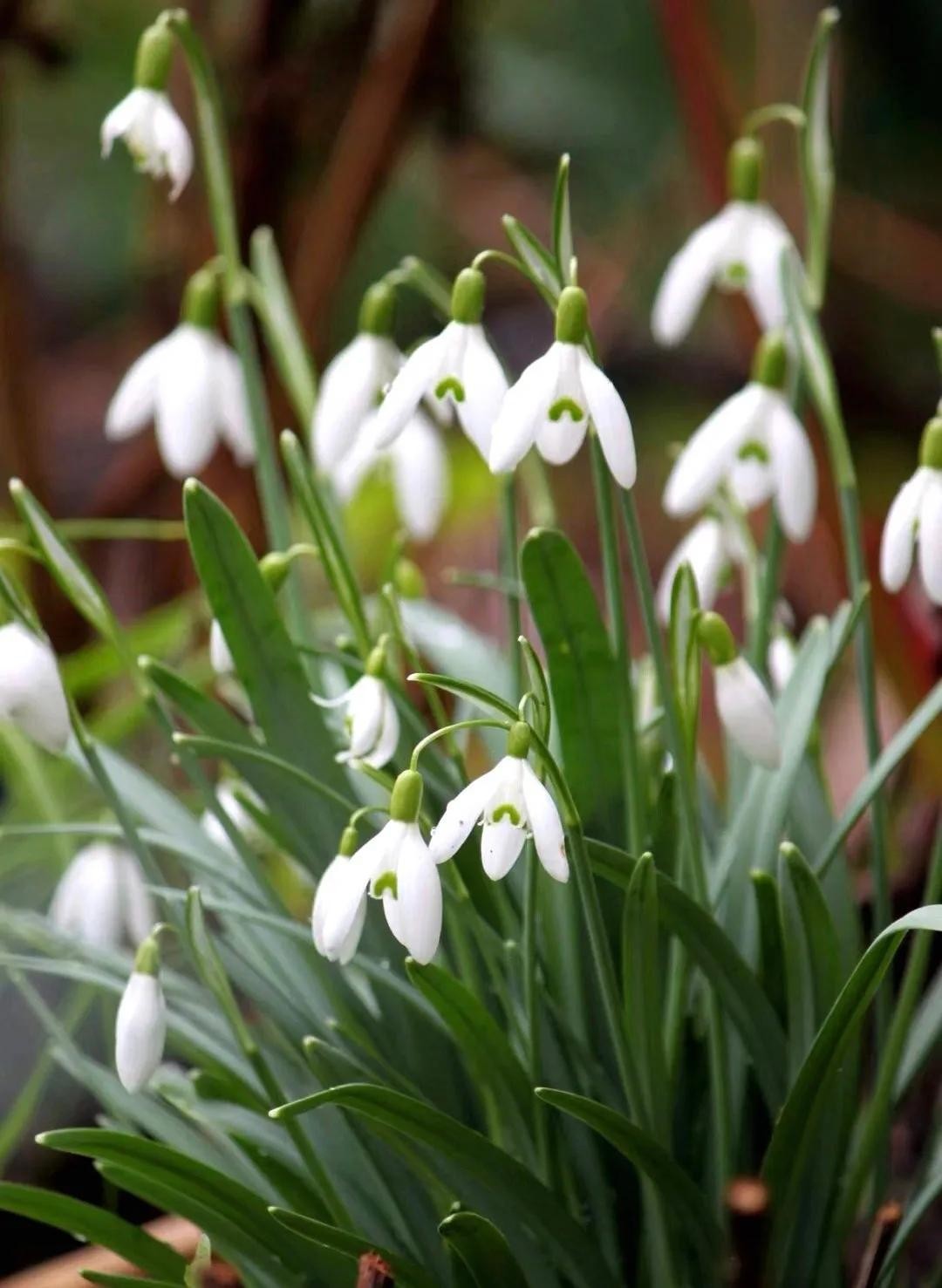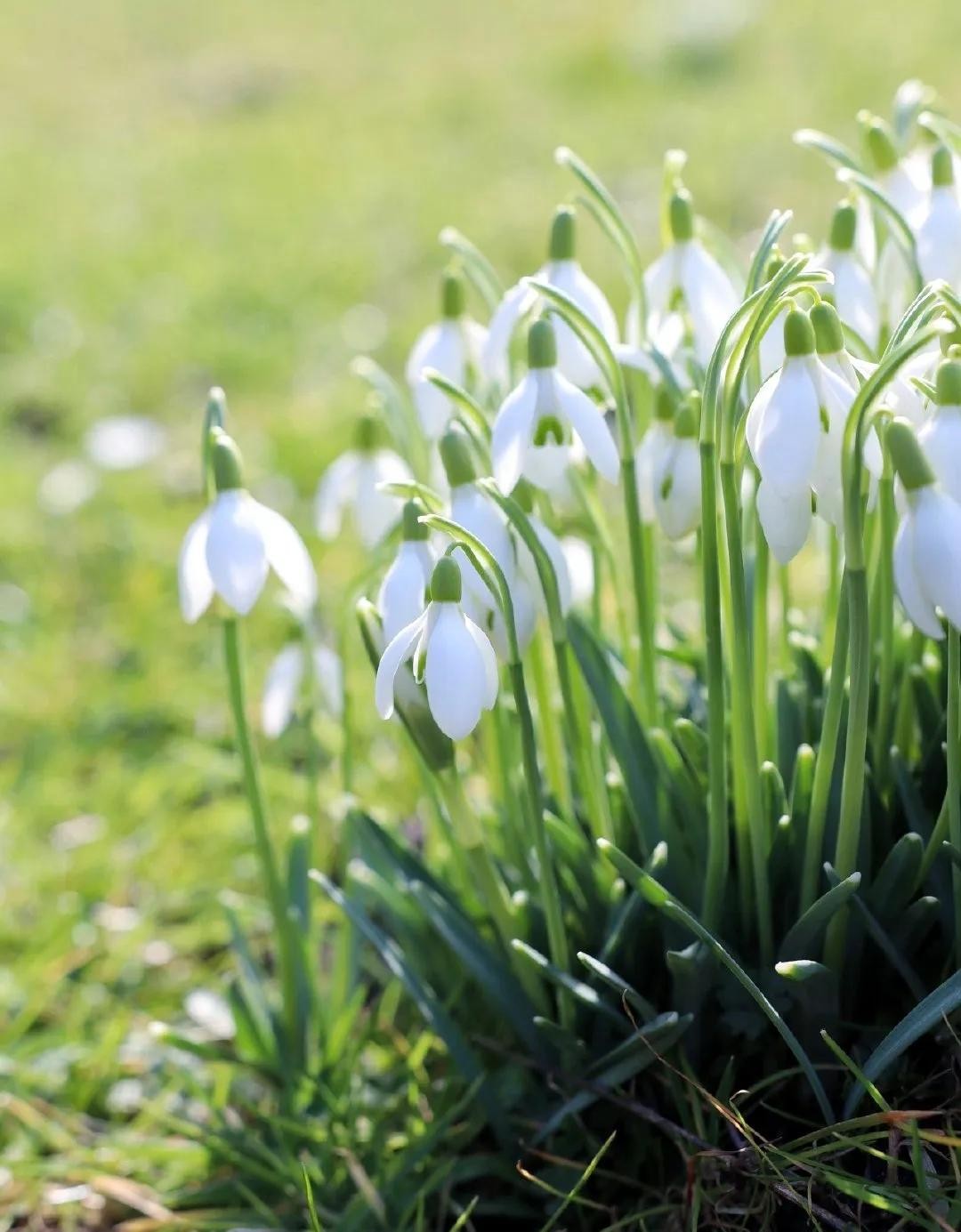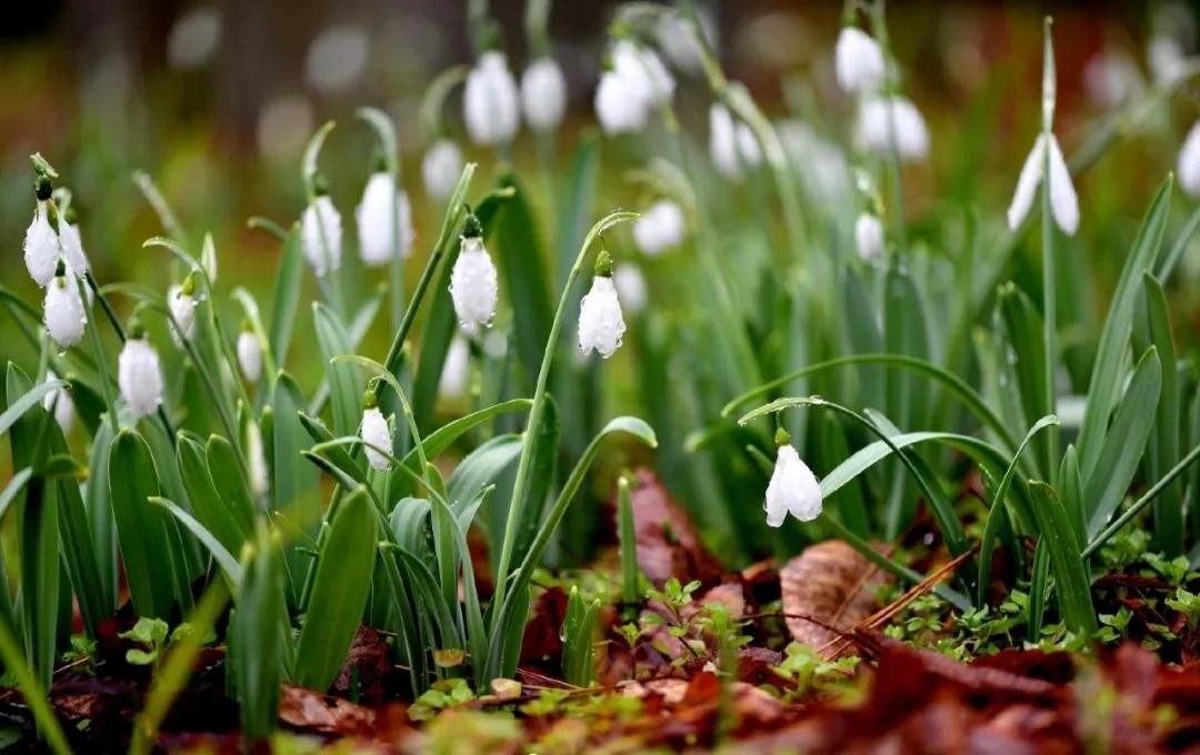 雪滴花,石蒜科球根花卉,植株矮小且呈丛生长,叶片细长油绿犹如韭菜,花开洁白如雪,花朵还很像个小铃铛。雪滴花在每年早春开放,甚至顶着雪都能绽放,算是比较早开放的球根花卉,而且它还比较耐寒,一般在零下15度的环境下,都能够在户外安全过冬,所以冬季不是特别寒冷的地区,秋季便可将其种植在庭院中。