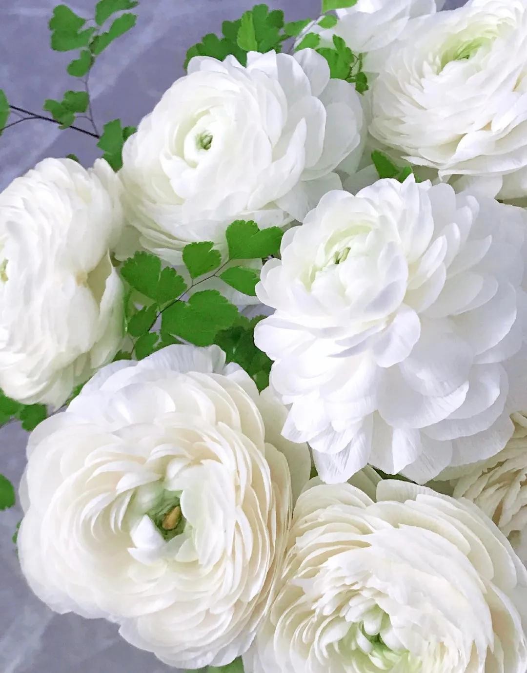 白色的花毛茛有着不输芍药牡丹的优雅感,它层层叠叠的花瓣散发着独特的唯美气质,让人移不开视线。
