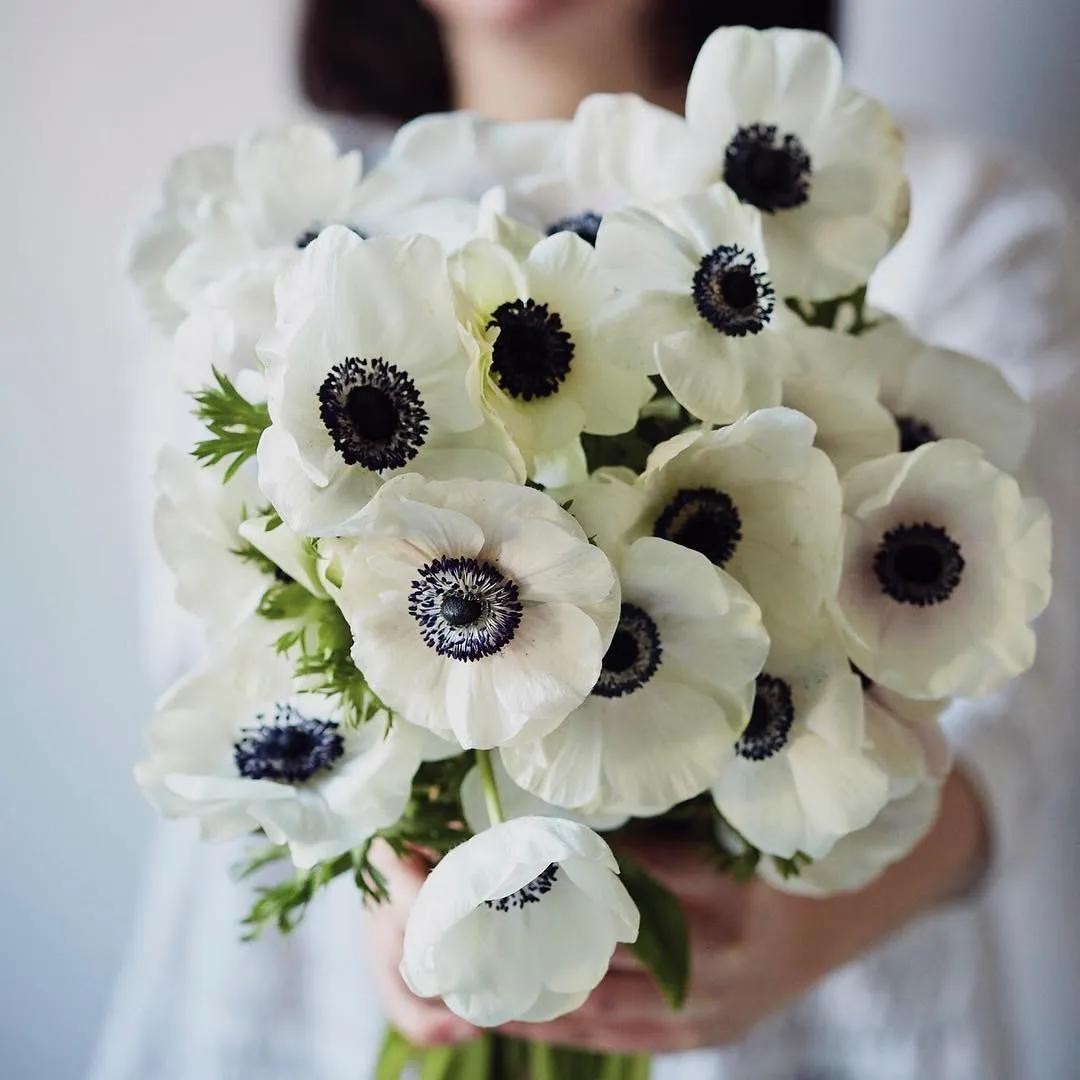 白色的银莲花就像是一颗明亮的珠宝,迷人而又闪耀~银莲花最特别的是它独特的黑色花蕊,漂亮优雅的花色搭配黑色花蕊,美而不艳,看到她就能想到亭亭玉立的美人,不急不躁缓缓开放。