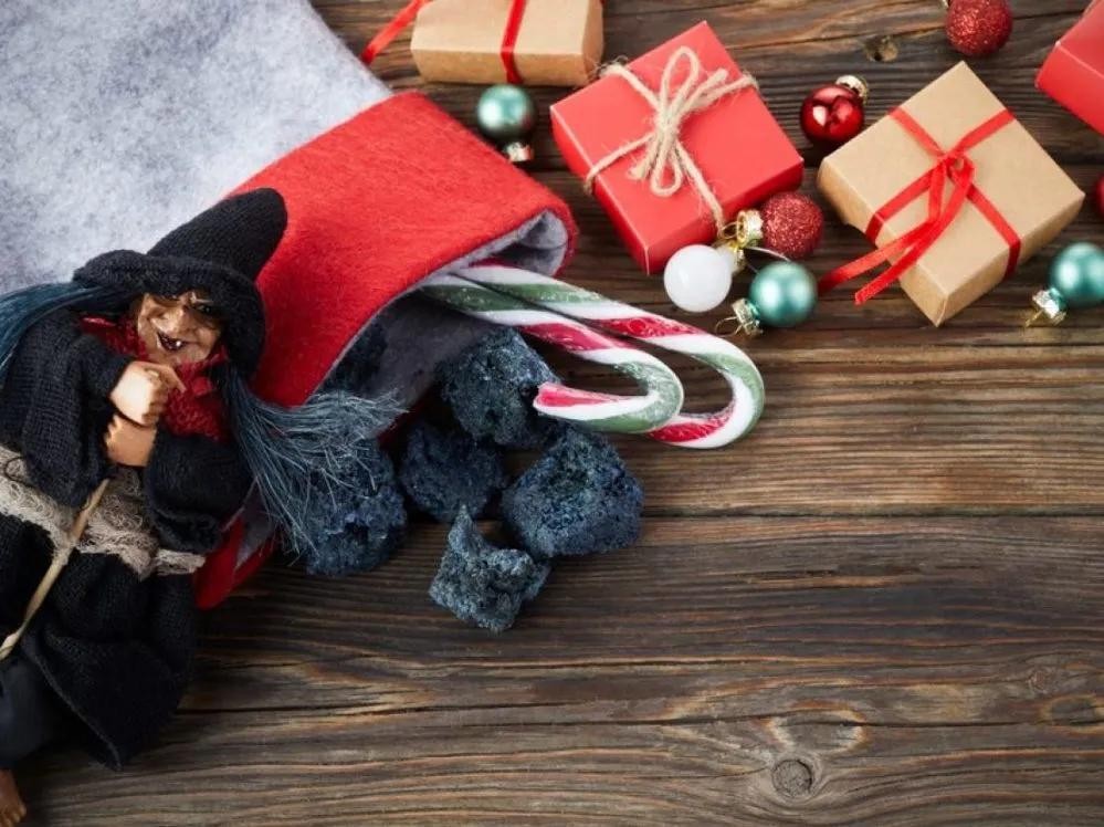 据说听话的小朋友会收到糖果和心仪的礼物,而调皮的小朋友只能收到脏兮兮的煤球和刺鼻的大蒜!
