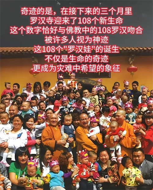 在这次的寺庙产房中诞生了108个生命,刚好跟108罗汉吻合,人们称为罗汉娃。
