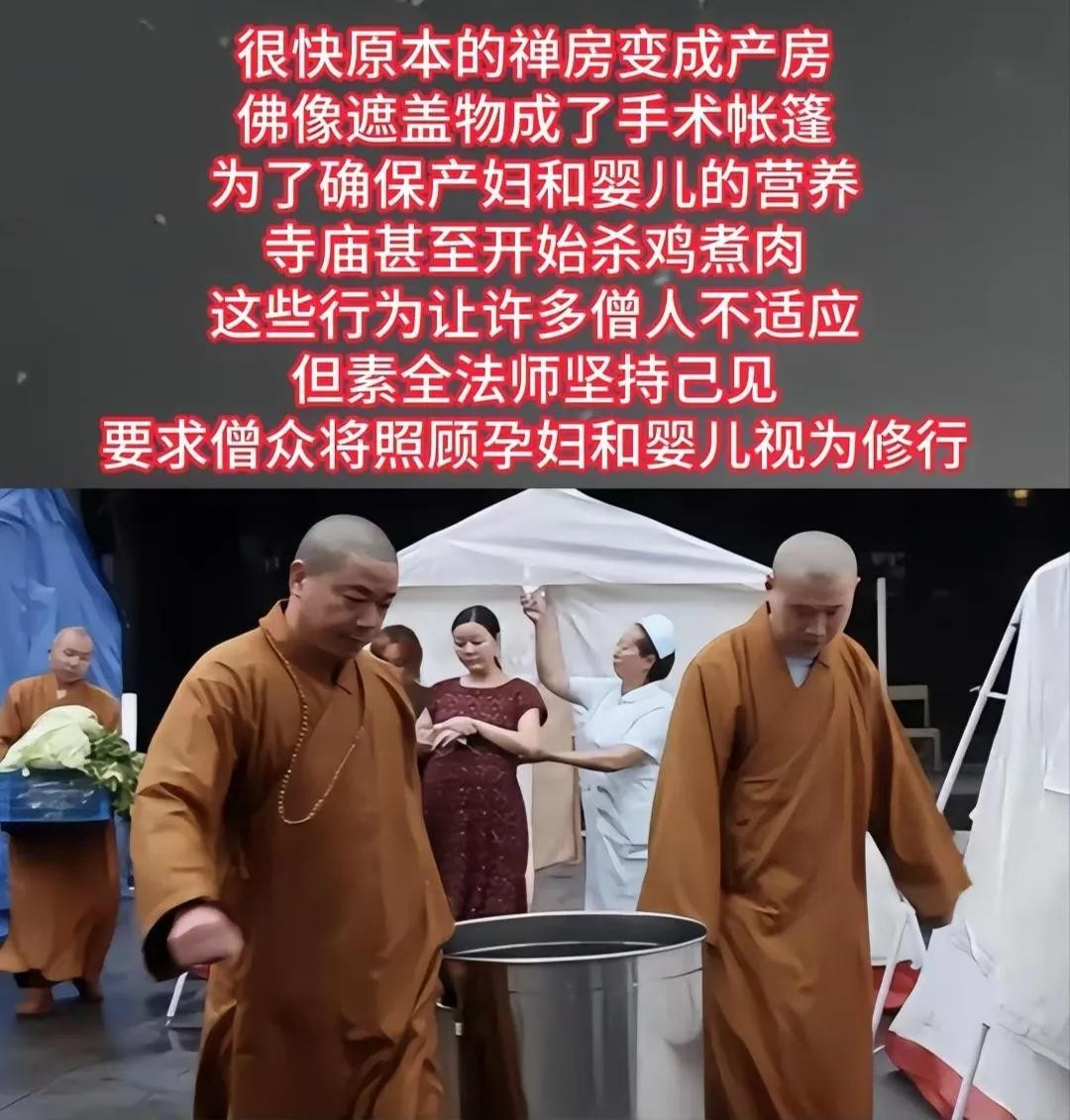 很快原本的禅房也变成了产房,为了能保障产妇跟婴儿的营养不受影响,寺庙甚至杀鸡煮肉来给产妇进补。他们这里才是真的修行。