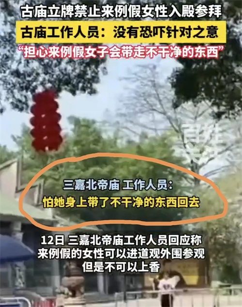 来例假女子禁止上香参拜,神明背大锅,古庙工作人员回应