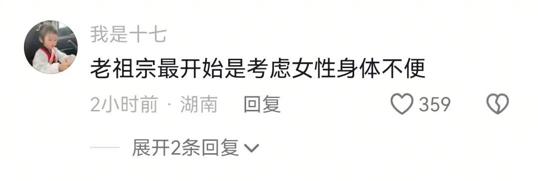 老祖宗最开始是考虑女性身体不便
