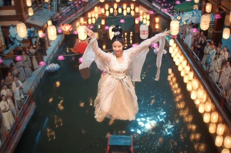 甚至,宁毅还借用投影的原理,让聂云竹迎着光,背对着绸缎跳舞,这样聂云竹的舞姿便能直接投射在绸缎上,舞姿绰约、诱人心魂。再加上天空中绽放的烟花,《水调歌头》的背景音乐,聂云竹的此次出场真的惊艳十足。