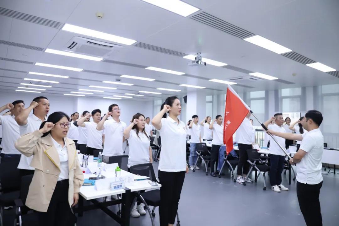 在结业典礼上,授予了第1期启航班班旗,全体学员面向班旗背诵艾美企业宣言。