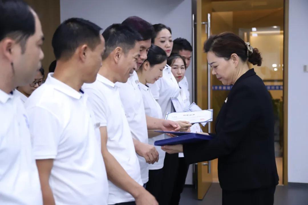 深圳面子美容管理有限公司总经理卢锦秀女士为每次考试成绩均优异的学员颁发了超级学霸奖。